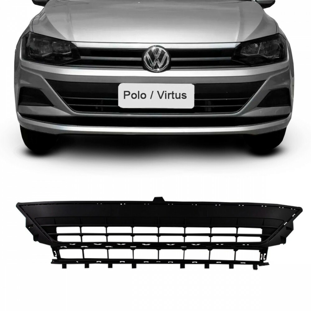 Tags: Grade central, para-choque, Polo Virtus, 2018 a 2023, preto, acessório automotivo, reposição, carro, Volkswagen, peça automotiva, grade frontal.