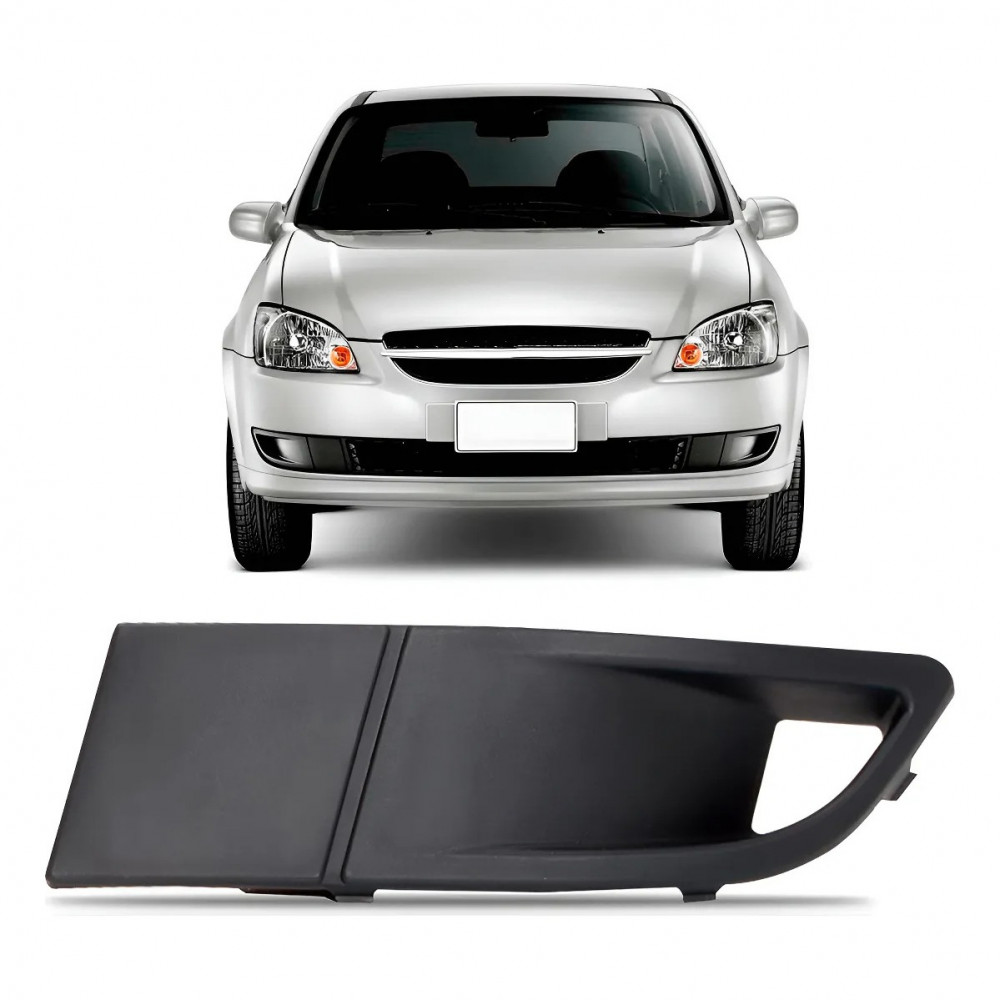 Moldura do farol de milha do para-choque dianteiro lado esquerdo (motorista) aplicável ao Chevrolet Corsa Classic anos 2010 a 2016, modelo com furo do farol milha. Produto novo para o seu veículo