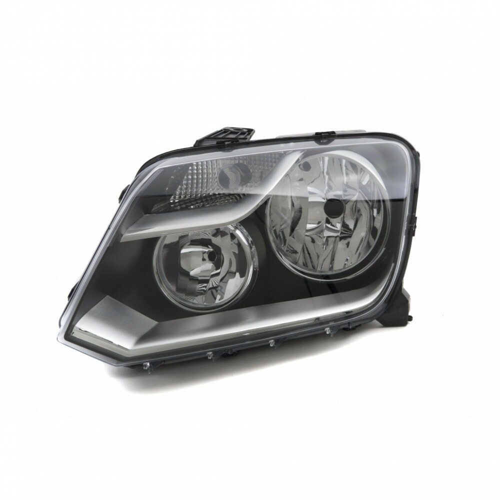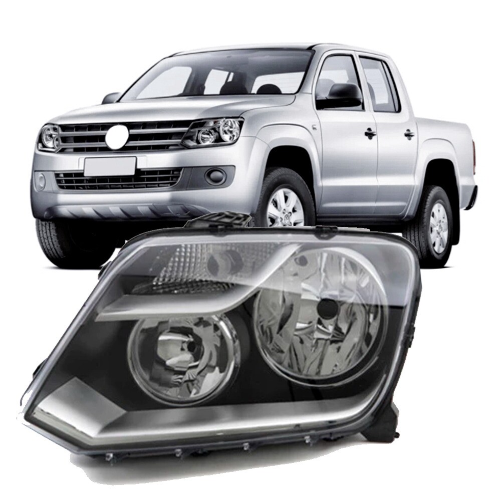 Farol principal lado esquerdo (do motorista) aplicável aos veículos Volkswagen Amarok anos 2010 a 2020. Produto original do veículo, usado, rigorosamente revisado, seguindo os padrões de qualidade originais de fábrica. Peça com máscara negra e regulagem manual.