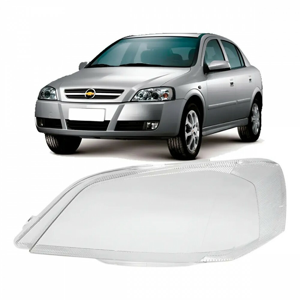 Lente do farol dianteiro lado esquerdo (motorista), aplicável ao Chevrolet Astra anos 2003 a 2012, modelo ´´Robocop``. Produto novo, fabricado em material resistente e de alta qualidade, garantindo transparência, encaixe preciso e durabilidade