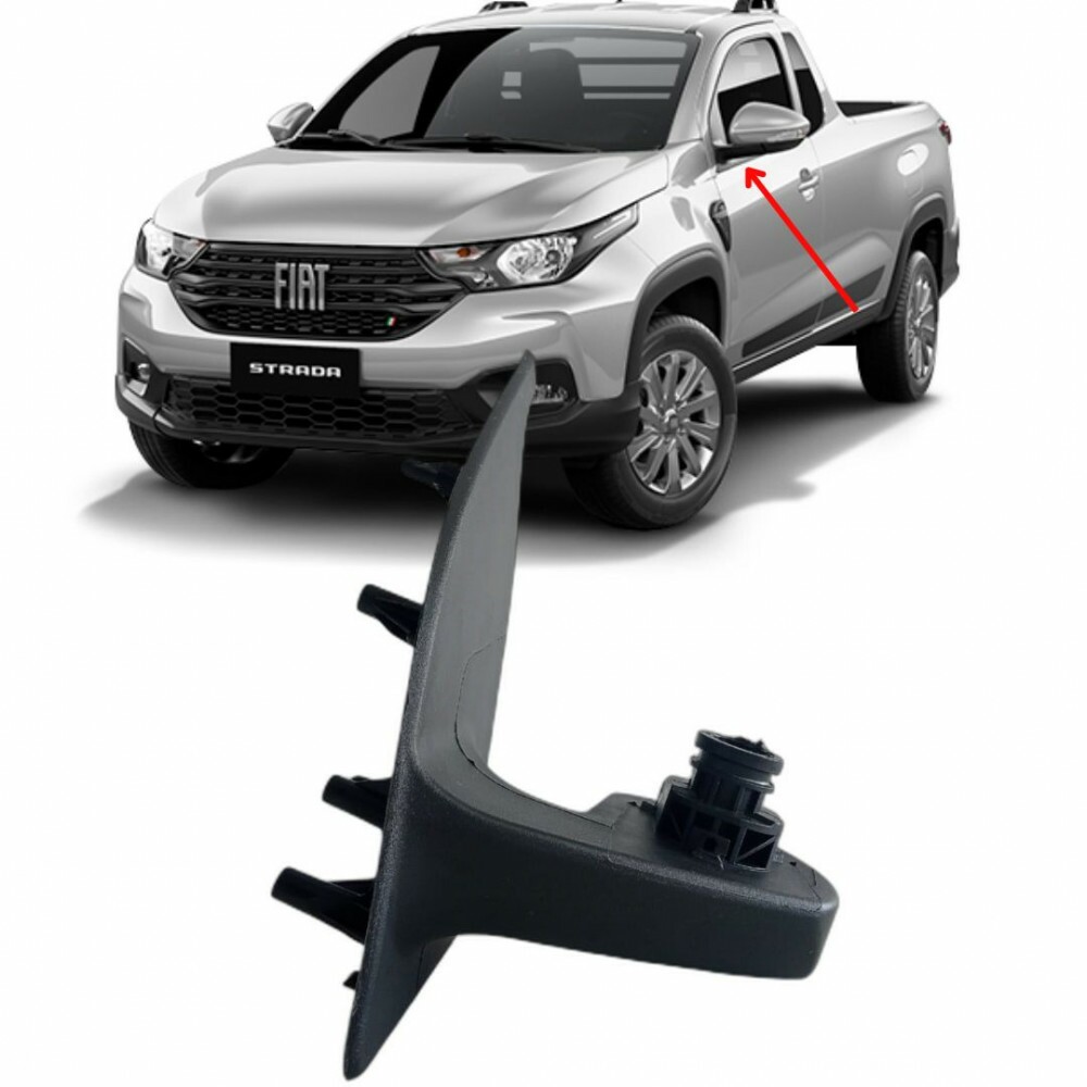 Tags: Pé do Retrovisor, Strada 2020 a 2025, Lado Esquerdo, Acessório Automotivo, Peça de Substituição, Fiat Strada, Retrovisor Esquerdo, Componentes de Veículos, Autopeças, Estrutura de Retrovisor.