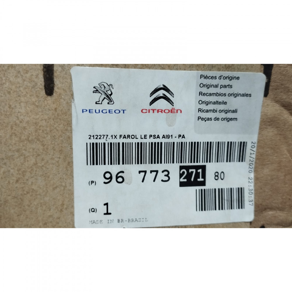 Farol principal lado esquerdo (do motorista) aplicável aos veículos Peugeot 208 2013 a 2016, modelo com regulagem manual, acabamento cromado e sem LED. Produto usado e original, revisado e testado, em bom estado de conservação, garantindo iluminação eficiente.